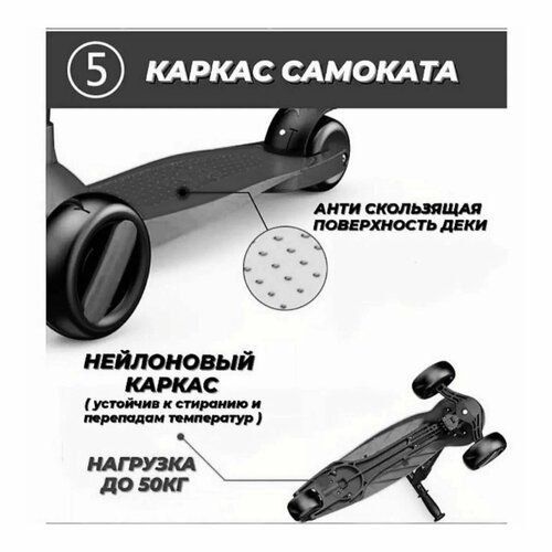 Регулируемый руль: Специально разработанный руль с возможностью регулировки позволяет адаптировать самокат к индивидуальным потребностям ребенка.